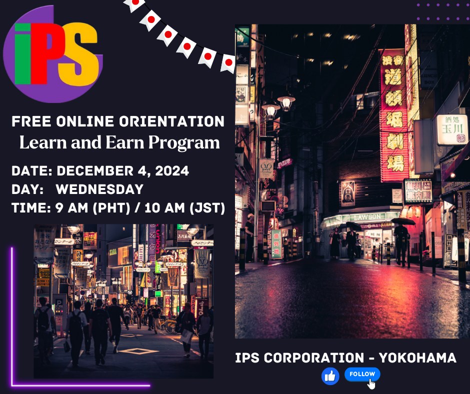 IPS Corporation – Yokohama invites you to our Free online orientation for the Student Visa Learn and Earn Program.